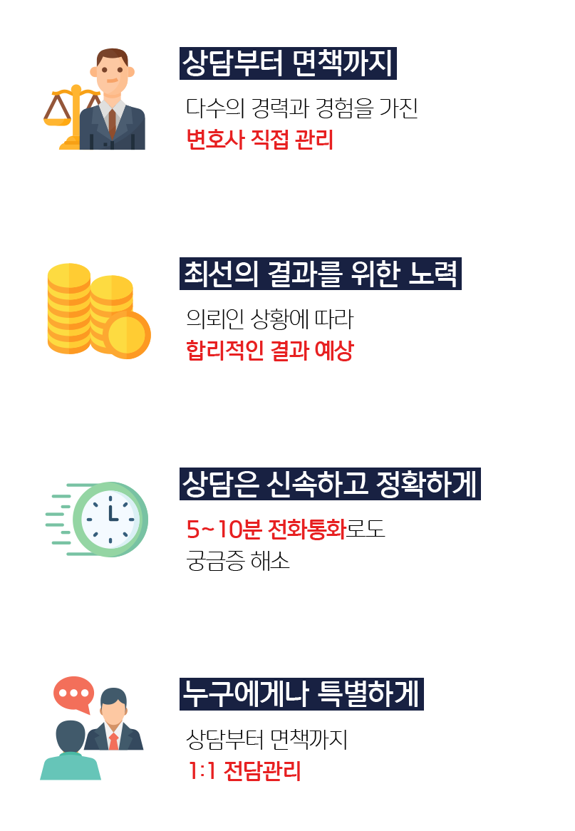 간단한 질문과 상담은 물론 본인의 상황을 어떻게 문의해야 할지 모르는 경우 전화 통화만으로도 최선을 다해 상담을 해드리고 있습니다.
